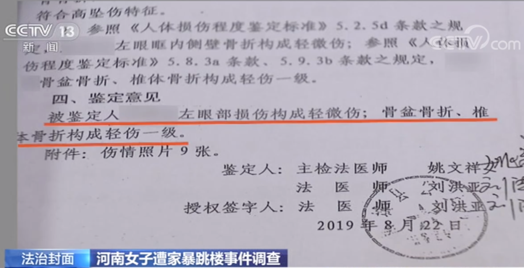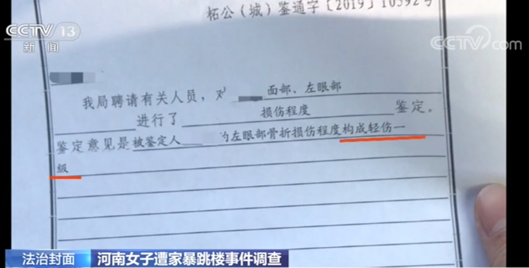 近期,一段“女子遭家暴跳楼”的视频受到大家关注,7月29日,当事女子小燕表示,河南柘城县人民法院已于28日判决其与丈夫窦某某离婚,婚生儿子由女方抚养。 事发时具体情形如何,这桩离婚官司是否遭遇了“离婚难”困境?日前,总台央视记者前往河南商丘,对这一事件进行调查。 遭受丈夫殴打 女子从二楼跳下 2019年8月13日下午13点38分,当事女子小燕从自己经营的服装店二楼跳下。隔壁店铺的张女士表示,当时听到门口有声音,看到了躺在地上的小燕,身上有被拳头打过的痕迹,头发撕扯也很严重。 视频显示,围观的人开始打电话,给小燕擦拭脸上的血迹,直到此时,窦某才从服装店推门出来。 张女士: 我听到他(窦某)问她(小燕)还敢不敢逞能,很冷漠,没有一点心疼的感觉。 时隔一年后,小燕重回事发的服装店,在这里接受了总台央视记者的采访。 当事人小燕: 不管是他的表情,说出来的话,还是对我实施殴打的这些行为,都让我觉得我可能真的要死在这儿了。但是我不想死,那扇窗口是我唯一可以逃生的出口,所以我才会从二楼跳下来。 婚后遭遇三次严重家暴 皆因丈夫赌博 为什么小燕会把二楼的窗口当成唯一的“逃生出口”?根据她的描述,当时最大的危险并不是跳楼,而是正在服装店里的窦某,此前多次遭遇家暴,让小燕对丈夫产生了恐惧。 小燕和窦某2016年确立恋爱关系,2017年按照当地风俗举行了结婚仪式,同年,他们的儿子出生了。2018年,两人在柘城县民政局办理了结婚登记。 婚后,小燕用父母给的陪嫁款开了一家服装店。面积为五十余平方米,一层为店面,二层是库房兼休息室。目前,二层的窗户已经被封上了。 小燕说,她在婚后遭遇了三次比较严重的家暴,导火索都是因为窦某赌博。她回忆,2018年4月的一天晚上,窦某喝了很多酒,回来之后两人发生口角,窦某第一次对小燕动了手。 当事人小燕: 当时他打我打得也挺狠,抓住我的头发,把我狠狠甩在地上。我当时滚了三四米远。他还用手用力捶我的后脑勺,踹我的肚子。 这也是小燕人生中第一次遭遇如此严重的暴力,她把自己的东西都搬回了娘家,决定和窦某离婚。不过在当时,小燕还没有“家暴”的概念,认为这是窦某酒后的一时冲动。一个月之后,在窦某的反复保证下,两人和好了。 可是和好后没多久,两人再次陷入不断争吵的旋涡。家庭矛盾得不到解决,窦某只想用暴力让小燕闭嘴。 小燕感觉这样的婚姻生活看不到希望。2019年8月7日,窦某的母亲在牌桌上找到窦某,并当场呵斥了他。窦某觉得母亲知道他在打牌是因为小燕告状,愤怒的情绪再次爆发。 当事人小燕: 他当着他妈的面在牌场直接给我打电话,说我该死,要回店里打死我。 丈夫突然闯入服装店 开始殴打妻子 那天挂断电话后,小燕关上店门跑回了娘家,此后的几天她都没敢再去店里,外出一般都有家人陪伴。她还计划去申请“人身安全保护令”。在此期间,窦某一直没有露面,小燕听说窦某去了郑州,所以在2019年8月13日那一天,独自一人回到了服装店。 当天下午1点多,窦某突然闯入服装店,开始殴打小燕。因为不是第一次遭受家暴,所以一开始小燕心里没有太多的恐惧,她将窦某的这种施暴称之为“目的性殴打”。 当事人小燕: 我坐在沙发上,他已经狠狠地打过我一巴掌了,又想打我一巴掌,然后我下意识躲避,他就停手了,同时露出非常得意,非常嚣张的笑容。所以我觉得他打我就是为了看到我恐惧、害怕他的样子,这对于他心理上可能是一种满足。 不仅如此,小燕总结三次家暴还有一个共同的特点,就是拿走她的手机,限制她的行动能力。 小燕称,她本有一次可以逃跑的机会,但因为当时腰还有尾椎特别疼,走路非常缓慢,很快就被窦某追上,然后窦某抓着小燕的头发,把她从门口拖向了吧台。 真正突破小燕心理防线,让她开始感觉到慌张和恐惧的,是窦某一记重拳打在她的眼眶。小燕称,当时她以为自己的眼睛瞎了,鼻血不停地流,然后开始眼睛睁不开。 小燕的哭喊声惊动了隔壁店铺的李女士。当时李女士还前来询问情况,据她回忆,窦某神色如常,称两人就是在吵架,因为窗帘是拉着的,李女士看不到里面的具体细节,就离开了。但据小燕说,窦某转回头面对她时,完全换了一副面孔。 当事人小燕: 他在打我的时候表情非常凶狠,可过去跟邻居说话的时候,表情又变得非常温和。 视频显示,窦某拉上窗帘,锁上服装店唯一通往外界的那扇玻璃门,随后将小燕拖到了吧台后面。 放心不下的李女士重新回到小燕的服装店门口向里张望,就在此时,小燕从二楼的窗口跳了下来。 妻子鉴定为轻伤一级 丈夫涉嫌故意伤害罪 随后,小燕被紧急送往医院。经诊断,她的身体有多处骨折与损伤,此后她开始了漫长而痛苦的恢复治疗,同样让她备受折磨的还有她和窦某的离婚官司。 事发三天后,小燕接受了第一次来自警方的损伤程度鉴定。根据柘城县公安局物证鉴定室所做的第一份鉴定书显示,经调查,小燕“左眼的伤情为丈夫殴打所致,其余伤情为跳楼所致”。 此次的鉴定意见为小燕“左眼部损伤构成轻微伤,盆骨骨折、椎体骨折构成轻伤一级”,对于此次鉴定意见,小燕提出异议。 2019年11月,根据柘城县公安局出具的鉴定意见通知书,此次认定小燕左眼部骨折损伤程度构成轻伤一级。窦某因涉嫌故意伤害罪被立案调查。 根据柘城县人民法院发布的公告:在案件侦查阶段,因为窦某拒