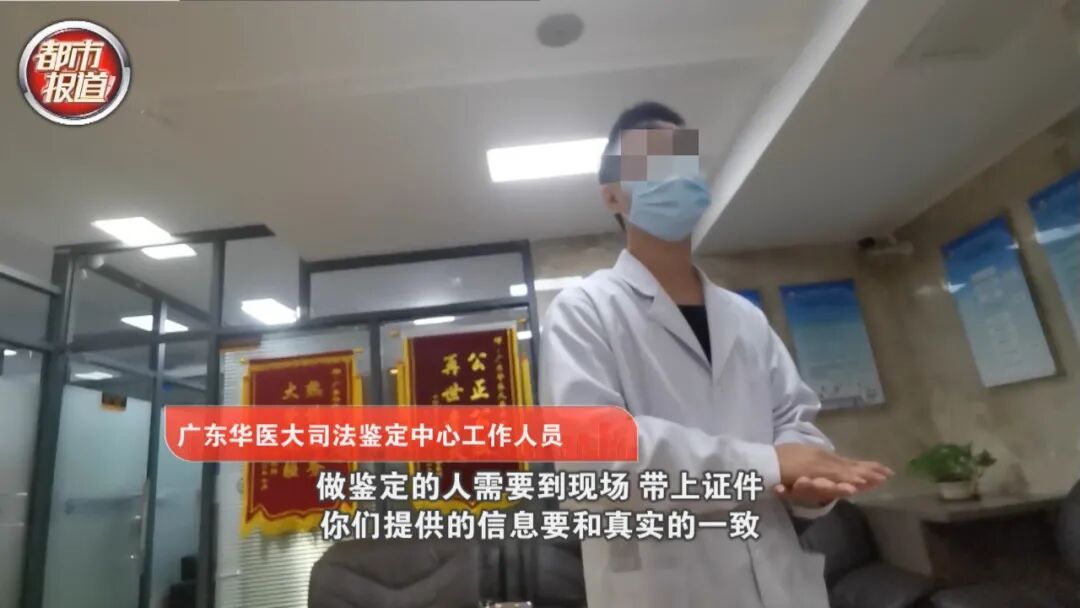 都市记者首先隐藏身份,借口为领养的孩子上户口,询问工作人员能否将领养的孩子鉴定为亲生。但无论是电话沟通还是现场打探,广东华医大司法鉴定中心的人并没有半点松口的意思。