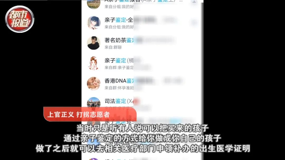 从2018年开始,打拐志愿者上官正义在卧底时发现,有多个QQ群成员称可以通过亲子鉴定来为买卖来的孩子“洗白”。