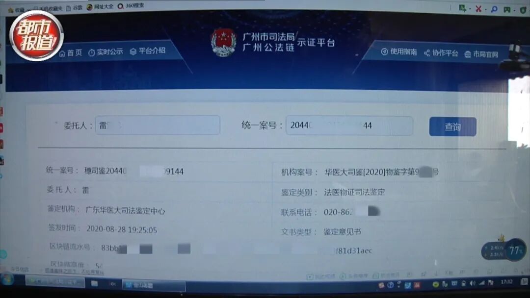这个所谓的马法医到底是什么身份,这样的亲子鉴定结果,又是否具备法律效力呢?记者查询发现,广州公法链示证平台在今年1月份刚刚建立,而且是全国首创。此后,广州全市41家鉴定机构接入“广州公法链”,司法鉴定意见书全部电子化,这个举措在广州市人民政府以及广州市司法局的官网都曾大力宣传推广。