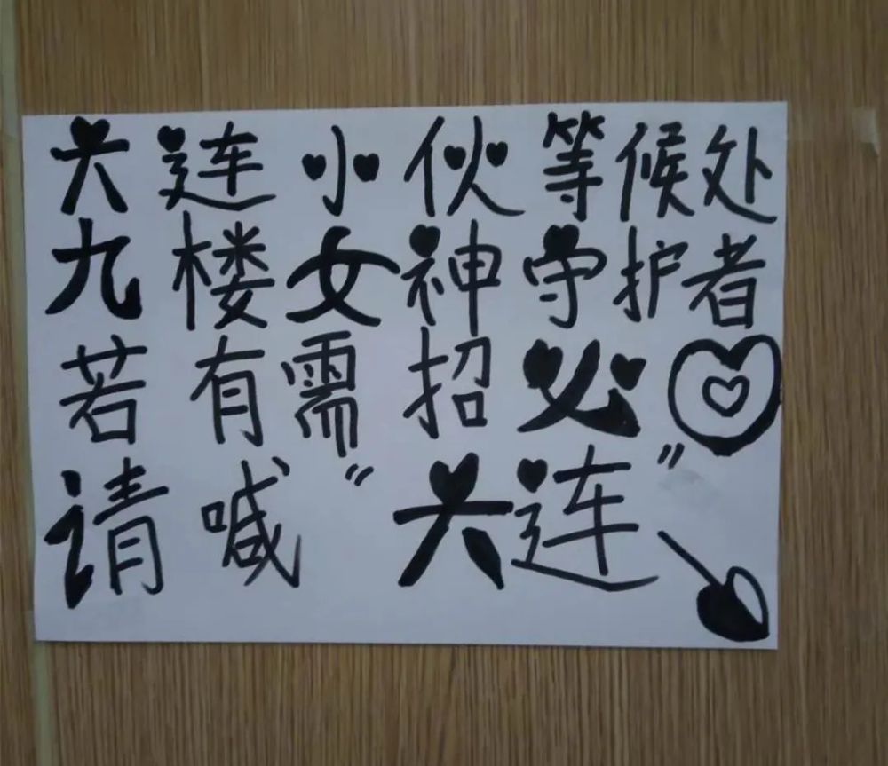 当时,蒋文强还给自己设了一个工位上面写着“大连小伙等候处”,医护人员有什么需要他帮忙的可以到这里找他。如今,纸条不见了,但他本人回来了。