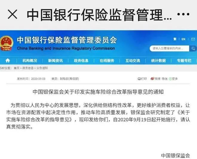 据中国银保监会《关于实施车险综合改革的指导意见》,车险综合改革将于9月19日在全国正式落地实施。