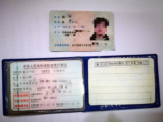 在查处现场,据车主陈某某讲,他的驾驶证已记满12分被交警部门暂扣,他的豫SDG900黑色别克轿车是2013年2月注册登记的,行驶证显检验有效期至2017年2月,已逾期三年零七个月未进行年审……