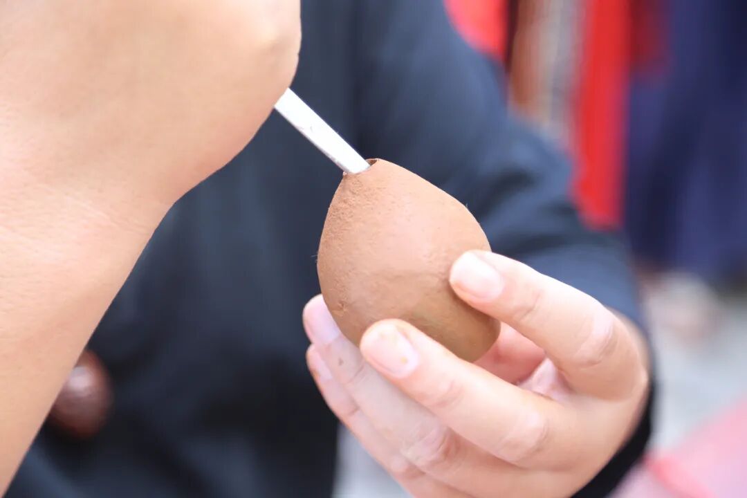 “自古有句话叫丝不如竹,竹不如肉。”翟嵩峰介绍说,黄河泥埙正是由黄河胶泥制作而成的,黄河胶泥品质细腻、杂质少,做出来的埙音色优美、浑厚。