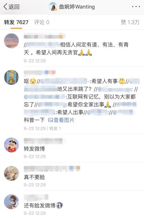歌手曲婉婷的一条微博动态