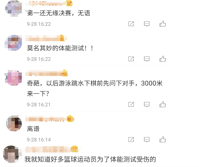 此前更有消息称象棋甲级联赛都需要选手参加基础体能测试,其内容还包含1000米跑等项目。