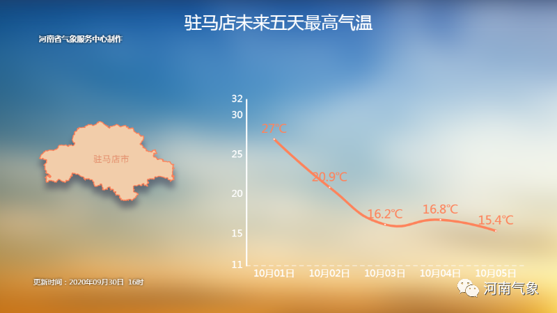 今天傍晚到夜里,中西部、北部阴天,其中三门峡、洛阳、济源、焦作四地区和新乡、郑州、许昌、平顶山、南阳五地区西部局部有阵雨;其它地区多云。