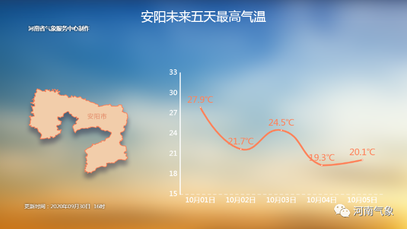 明天白天,济源、焦作、洛阳、三门峡四地区和安阳、新乡、南阳三地区西部阴天,有分散性阵雨;其它地区多云。