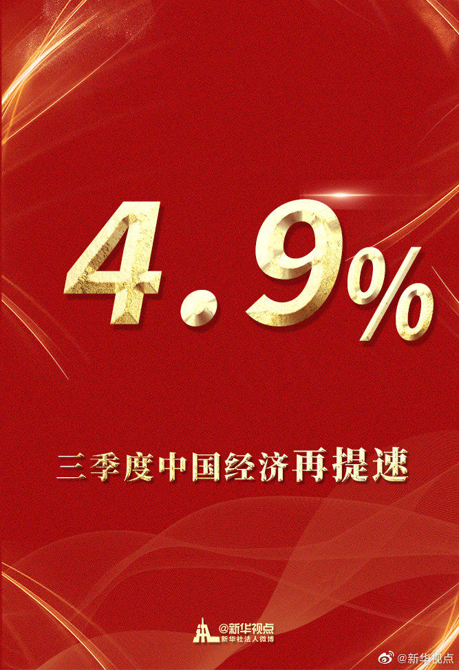 原标题:最新“成绩单”来了!三季度中国经济增速加快至4.9% 来源:新华视点微博