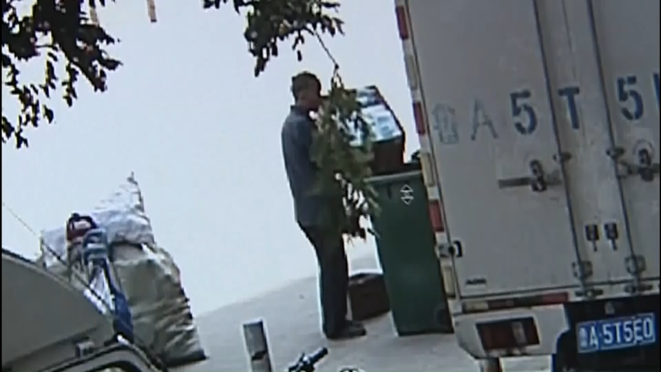 随后,民警继续追踪监控,发现这名男子做出了令人不解的举动。该男子将两箱口罩抱至一个垃圾桶旁边,把口罩全都倒在垃圾桶里......只留下两个纸箱子拆开装进自己的废品袋。