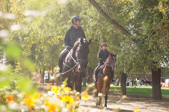 天空纯净,绿树映衬,上午10时,第一批骑手在崔各庄马道策马启程。一路上,他们穿越林地、公园、绿道、湖泊、葡萄酒庄、水稻田、杨树林和紫薇林等景观。
