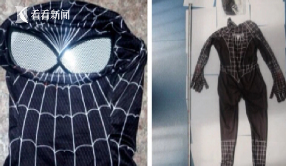 小慧称,嫌疑人当时是穿了件蜘蛛侠的衣服,两个眼睛是硬壳树脂……颜色大概是黑白相间一样的。