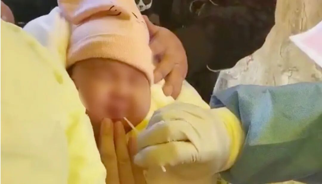 41天宝宝熟睡中核酸采样