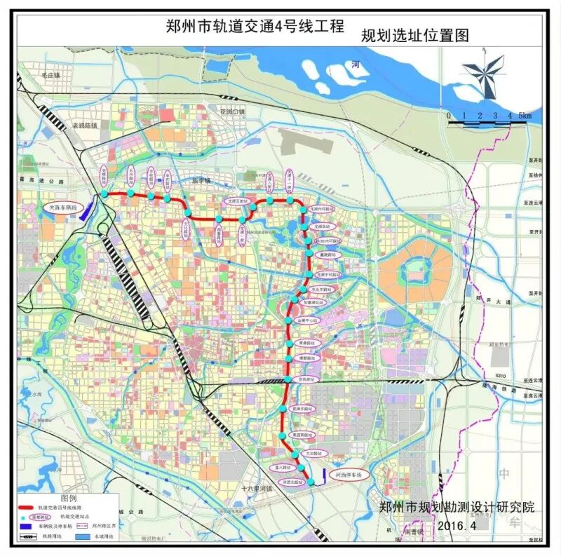 线路总体规划:郑州地铁4号线呈倒“L”形走向,西北起自惠济区老鸦陈站,途经金水区,东南止于管城回族区郎庄站,途经国家级郑东新区。