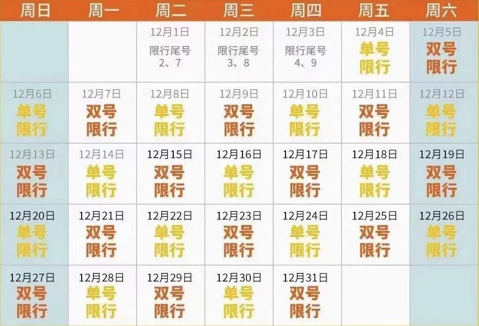 2020年12月4日至12月31日,郑州将实施单双号限行。限行区域为东四环、南四环、西四环、大河路以内区域(均不含本路)。据了解,2021年1月1日起郑州将恢复之前的限行措施,工作日限两号。