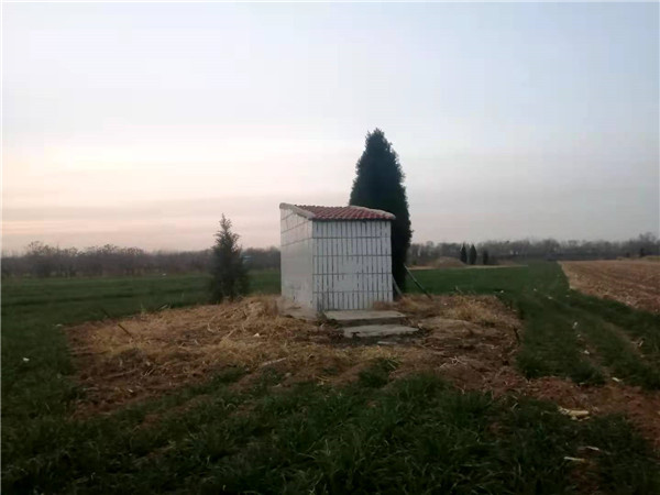 在康新正的带领下,我们在村北的一处荒田里找到了康菲菲的坟墓。这实际上是一处突兀在地面之上的棺材样的小房子,用砖砌成,外面抹了一层水泥。康新正说,取康菲菲尸骨之前,他们就在此地放好了棺材,也买来了砖块和水泥。当天取回来之后,就把康菲菲的尸骨放进了棺材,第二天又在棺材外面盖了这个小房子。