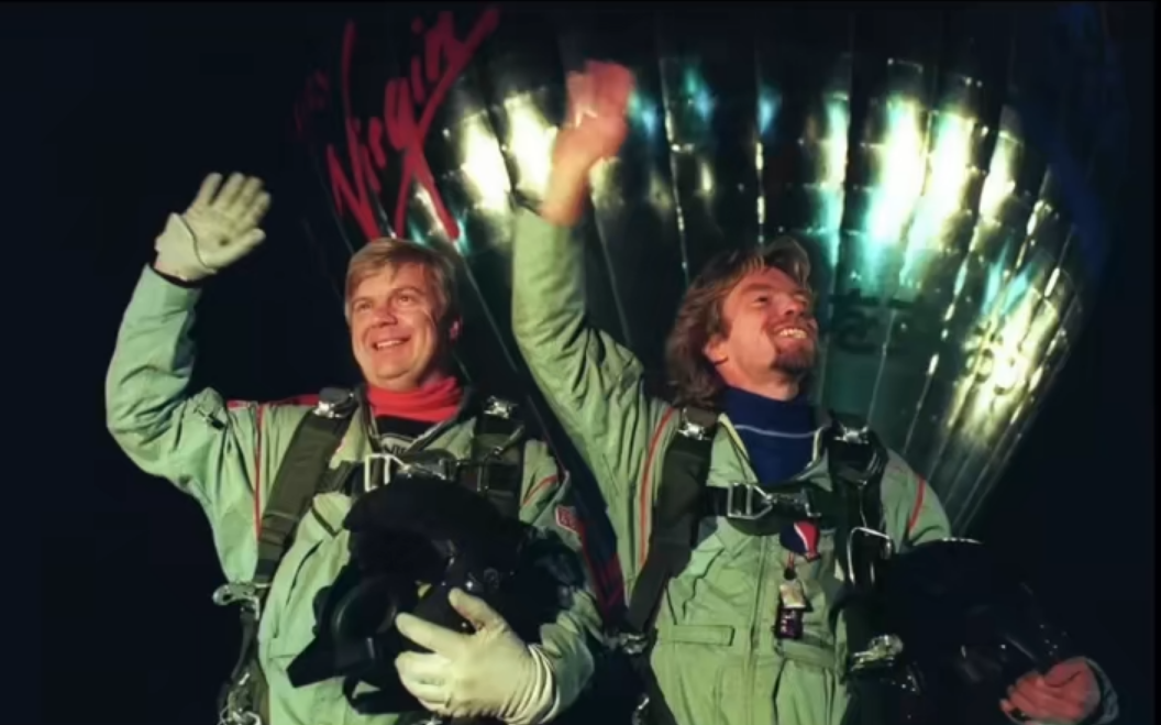 1987年布兰森开始第三次冒险,乘坐热气球从美国出发,横跨大西洋,就在快要完成的时候,热气球突然急速上升,布兰森给妻子孩子写好遗嘱后,就带着跳伞包从热气球上一跃而下。下落过程中和英国直升机擦边而过,落地之后才知道是英国军队在演习,布兰森没有在空中被打成筛子已经是不幸中的万幸了。