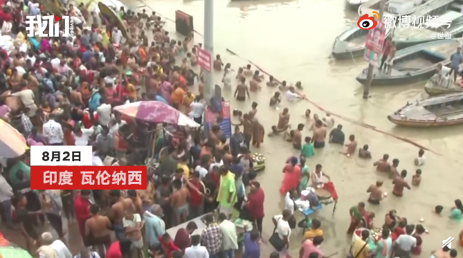 8月2日,印度大批民众无视防疫规定,聚集恒河岸边沐浴。 信徒前往著名宗教城市朝圣,瓦伦纳西街头当天拥挤不堪。 印度理工学院两个团队同一天发布“预警报告”: 印度新冠病例数量8月将迎来上升,第三波疫情10月或将达到峰值。