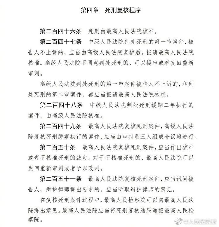 我国刑事诉讼法规定,死刑由最高人民法院核准。其中,刑事诉讼法第二百四十六条至第二百五十一条规定了死刑复核程序。