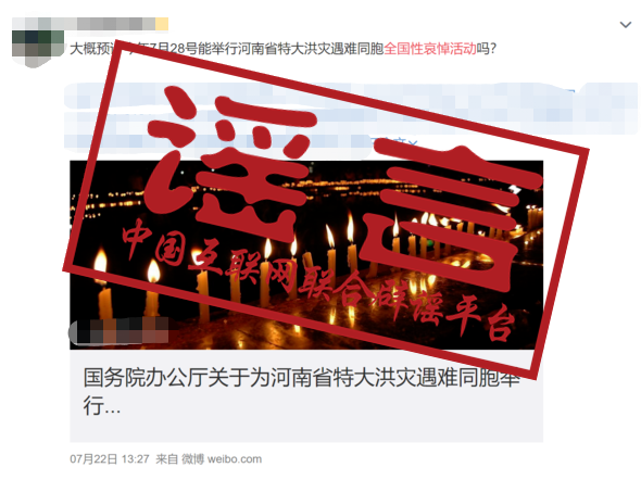 为河南特大洪灾遇难同胞举行全国性哀悼活动?谣言!