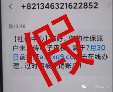 厦门的林先生接到冒充社保局的短信:“【社保中心】您好 ,您的社保账户未上传电子审核,请于7月30日前打开a.szxq9.cc点击在线办理,过时将被注销账户!”