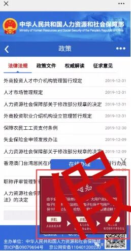 林先生点击短信内链接,手机界面显示出“中华人民共和国人力资源和社会保障部”。对此,林先生并没有产生怀疑。