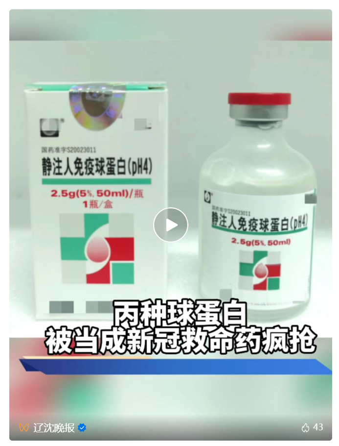 记者以患者身份咨询浙江省人民医院感染科主治医师,其表示,静注人免疫球蛋白医学上简称丙球,免疫球蛋白可以提升免疫力,但不是专门针对新冠的,也没有预防作用,预防传染病还是要接种疫苗。而普通型和轻型新冠患者根本用不到丙球,不需要囤。“一般一些免疫性疾病会用到免疫球蛋白,或者严重感染,炎症因子风暴的时候。”