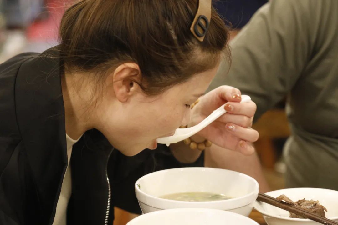 每天用30斤羊骨头和将近20斤羊肉一起熬汤,每天不到八点就卖完。偷偷告诉你,店里可以免费续汤哦✌!